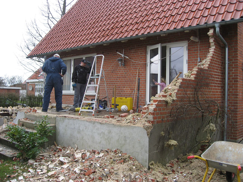 Familien Bech trak i arbejdstøjet i påsken. Vi havde lige en udestue, der skulle rives ned. Det blev klaret på 3 dage med kyndig hjælp fra familie og venner. Vi bringer her en fotoreportage.