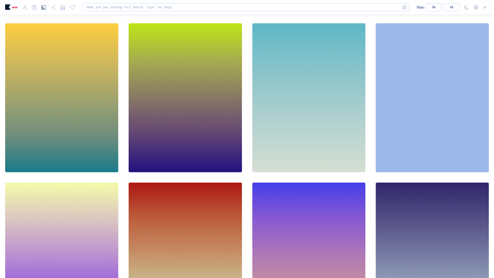 Khroma beder dig vælge 50 favorit-farver. Her ud fra genererer den en masse paletter med forskellige farvesammensætninger. Det er ganske velfungerende og nok min nye favorit.